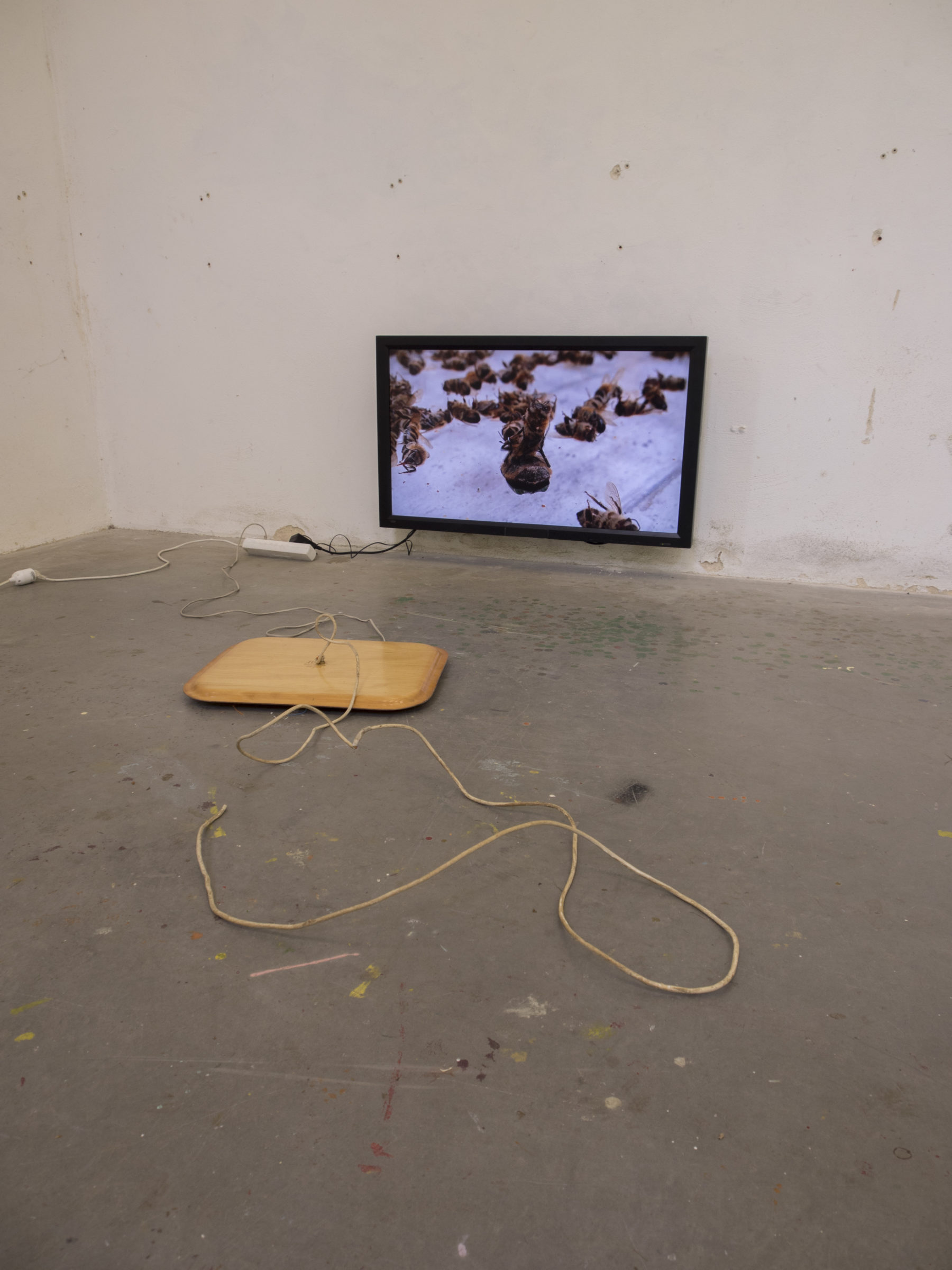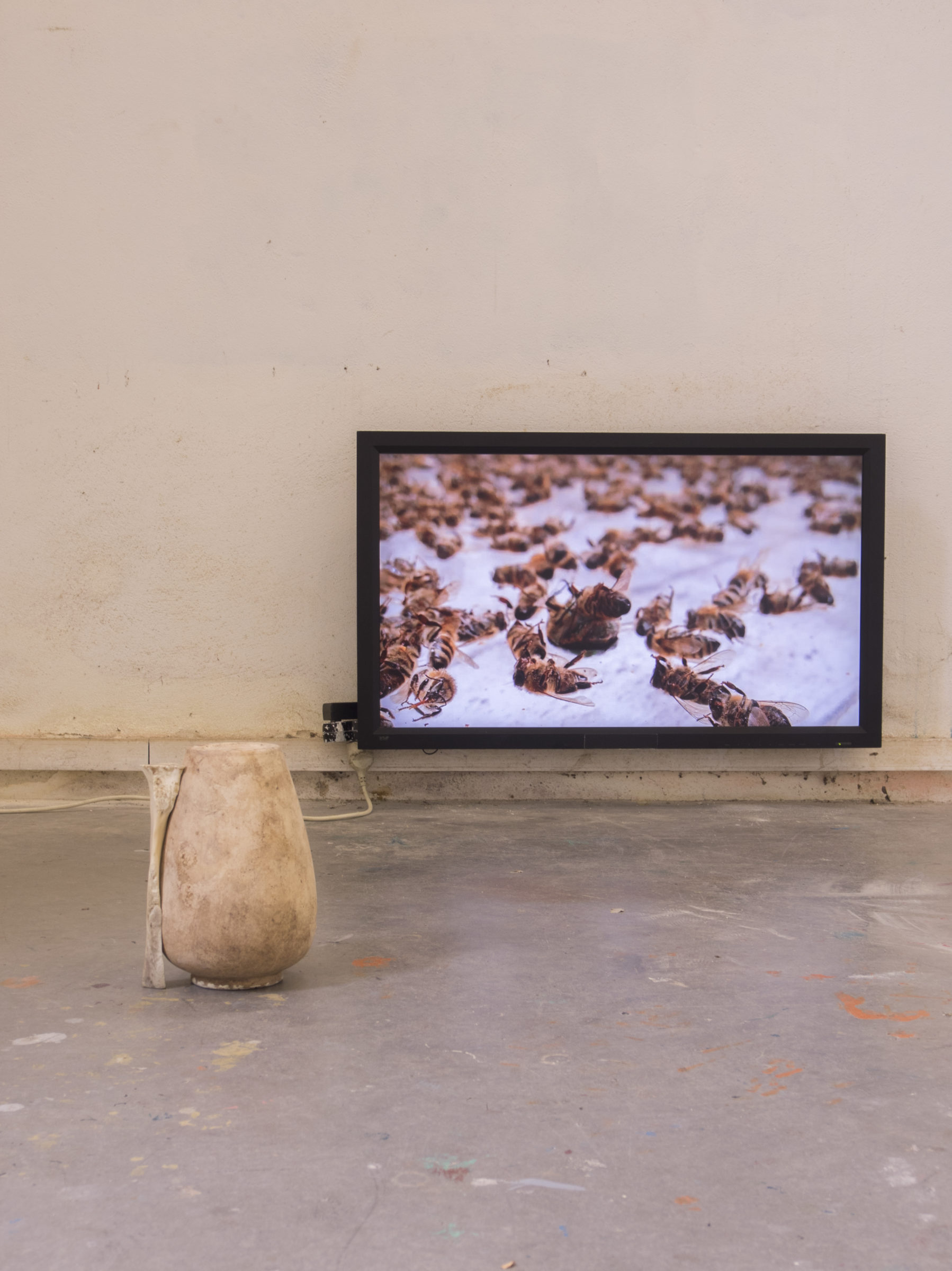 2024, céramique, os de bœuf, moniteur, vidéo